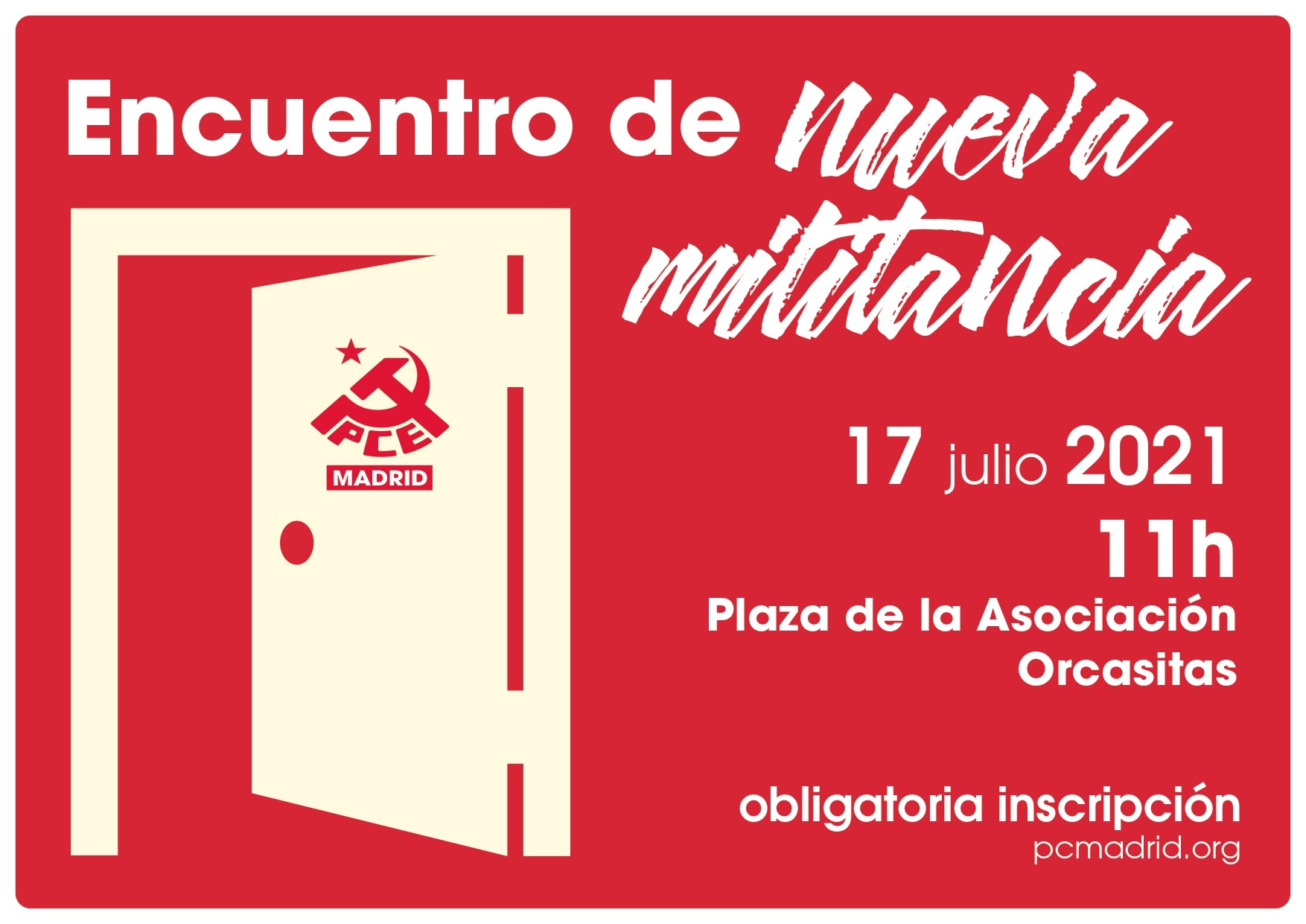¡Acude al próximo encuentro de nueva militancia que tendrá lugar el sábado 17 de julio en la sede de Orcasitas!